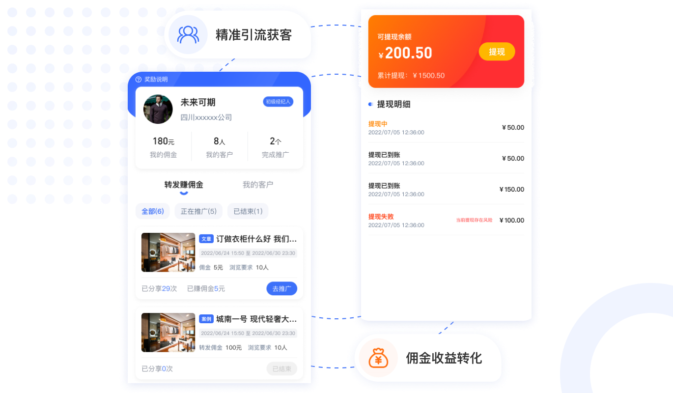 用戶激活收益,團隊推薦獎,團隊極差收益,快速裂變用戶